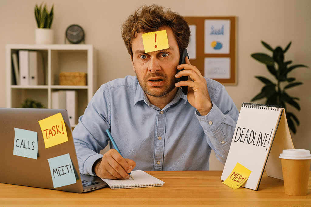 A person overwhelmed with tasks